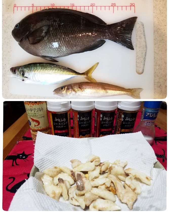 メジナ、アジ、キスの素揚げ