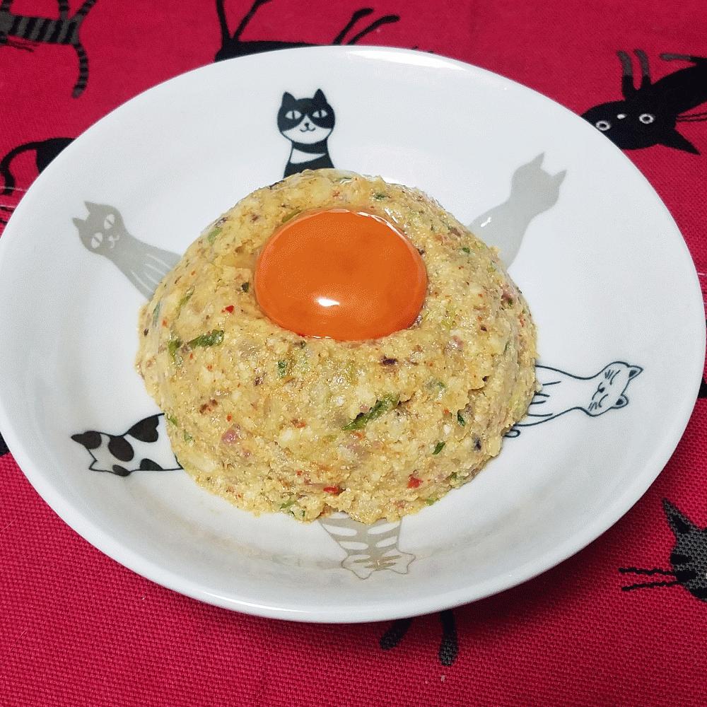 黄身も乗せてなめろうユッケ風味が旨い