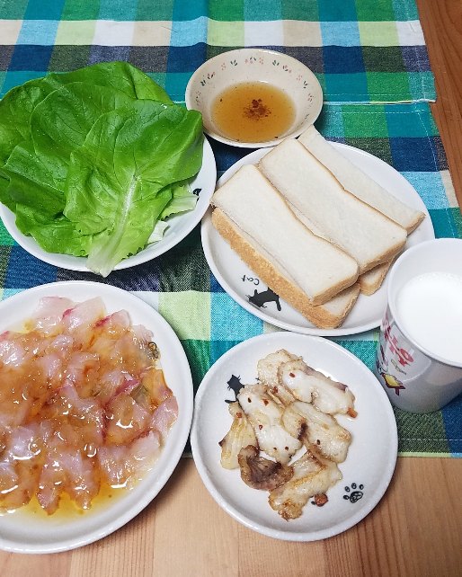 メジナのカルパッチョ、メジナのアヒージョ、アヒージョのニンニクオリーブ油も残さずパンに浸けて最高です(笑)