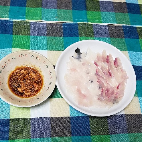カワハギきも醤油でシマアジも旨すぎる(笑)