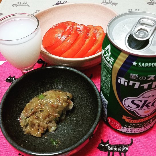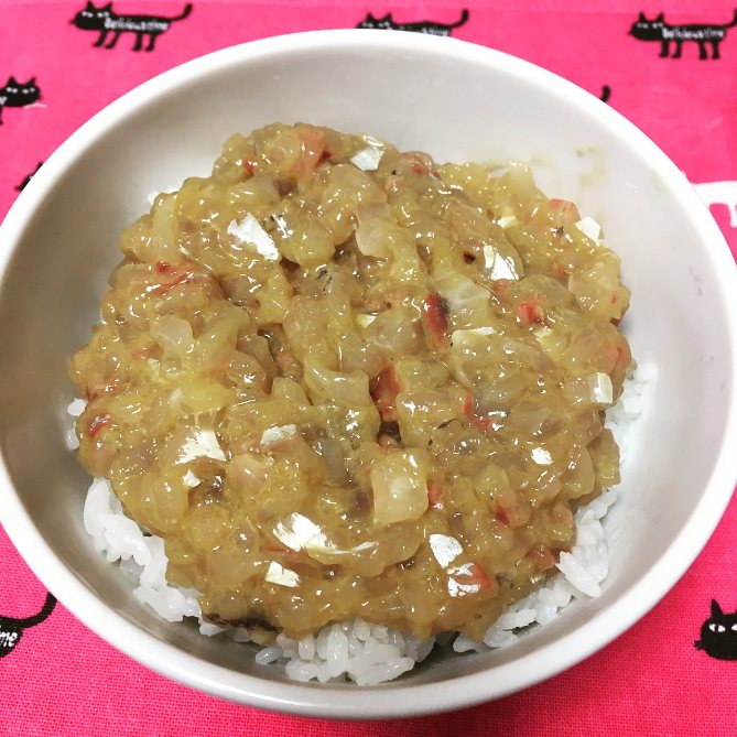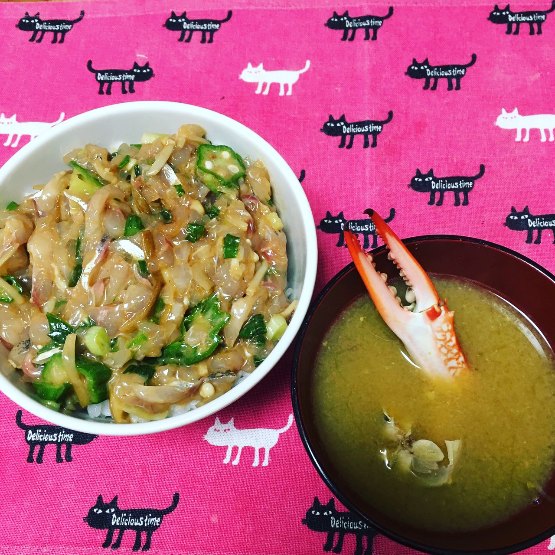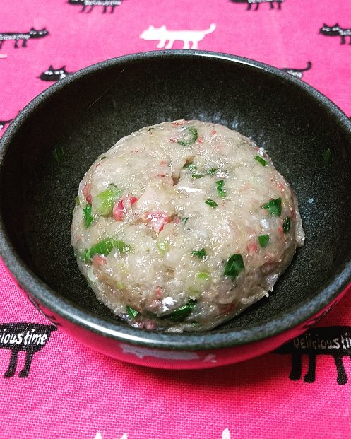 青ネギ、オクラ、エノキタケ、コチジャン入りアジのなめろう
