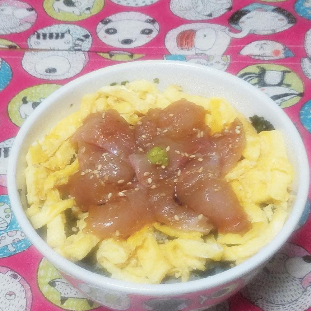 メジナの漬け、海苔、金糸卵で旨い丼に