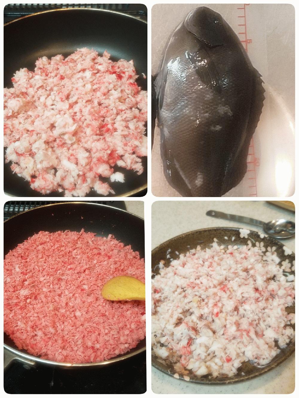 塩、酒、食紅混ぜてポロポロに炒るだけ