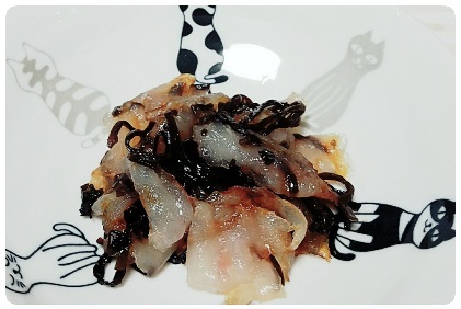 4.市販の塩昆布を刻んであるものを(塩こん部長という商品名のようなもの)キスの身の量に合わせて多すぎないようにして、3と一緒にビニール袋に入れます。