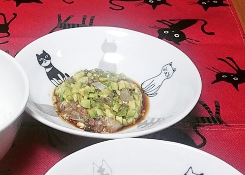 アジを刻みアボカドも刻み食感残して和えました🎵