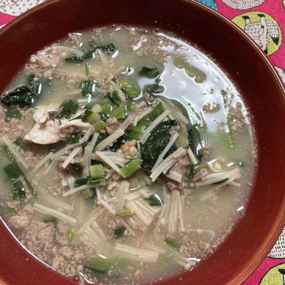 相棒のマサが釣ってきたカワハギのアラの部分(頭、カマ?の部分)とカワハギの肝をたっぷり入れた味噌汁です。