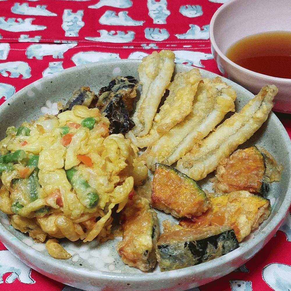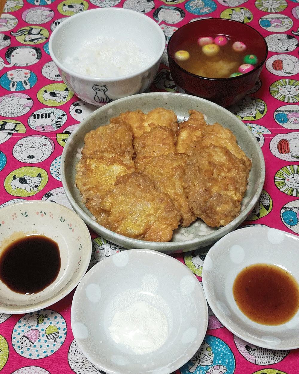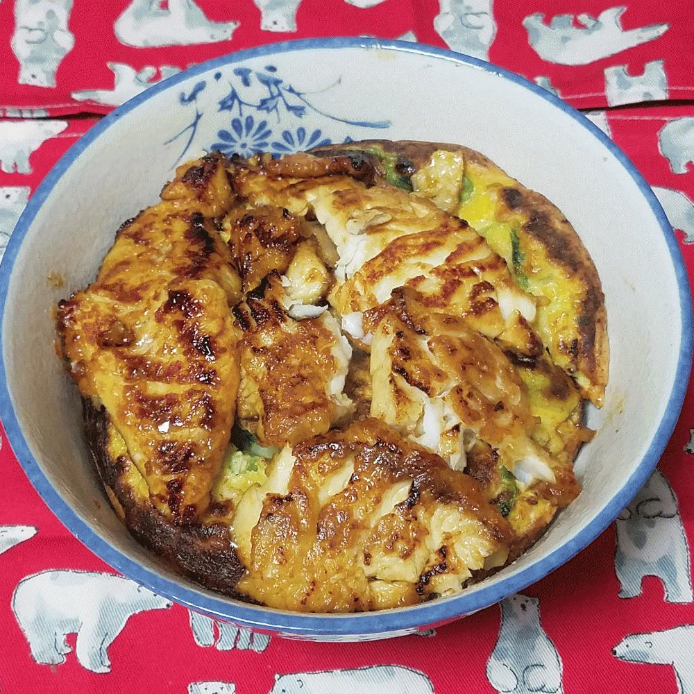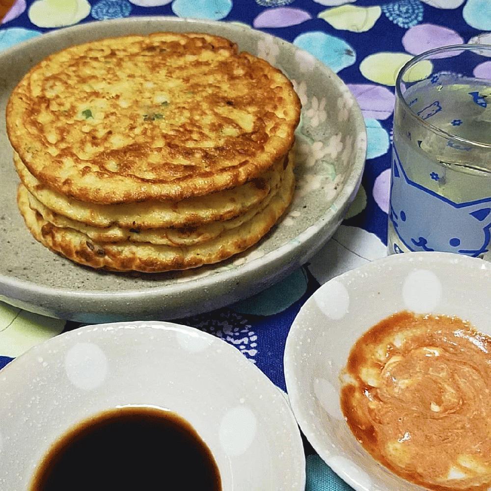 アジ、イシモチ、コショウダイ、シラスをミンチに刻んでお好み焼きの粉と卵でふっくら焼きました🎵