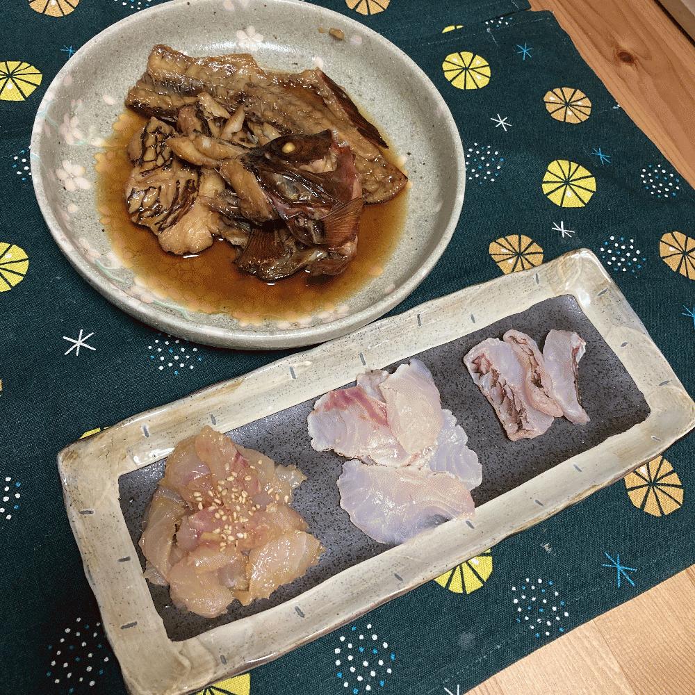 夫が食べてみたいと昨日の初島釣りで釣ってきたものを煮付けと刺身で頂いてみました。