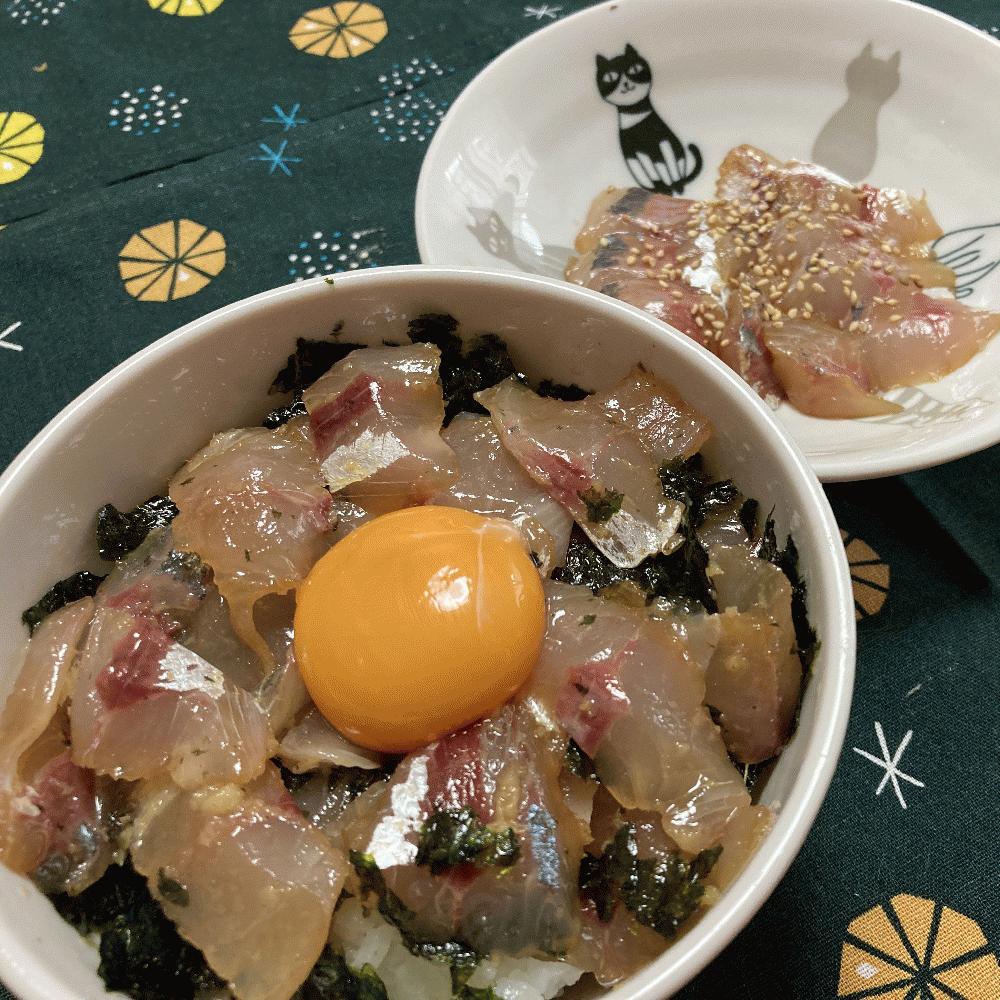 おまけは鯵のタタキに業スーの生姜調味料をまぶしてアジシオで味を調整したもの。
