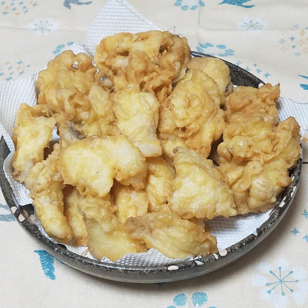 アジとメジナの天ぷらの予定が何故かアジは衣が離れて粉砕しました