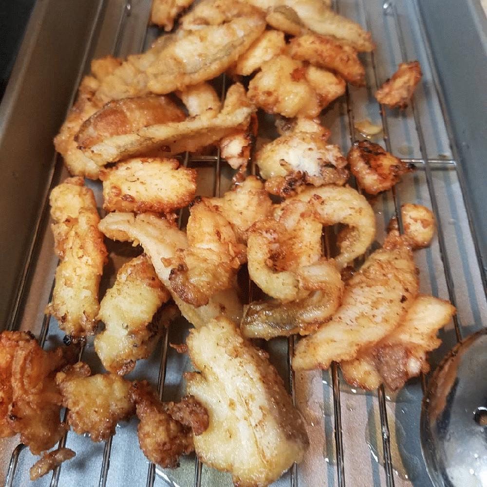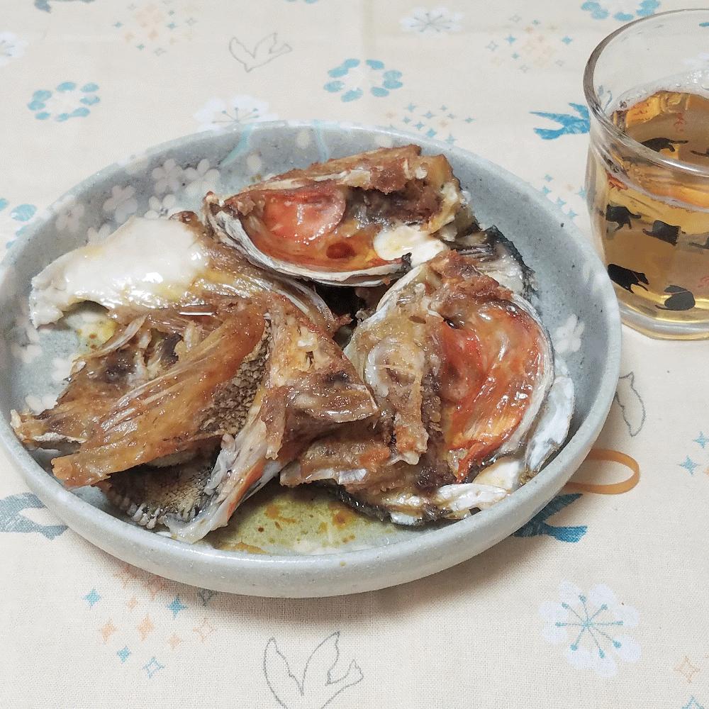 カシラ、カマ、ハラス、中骨のアヒージョです