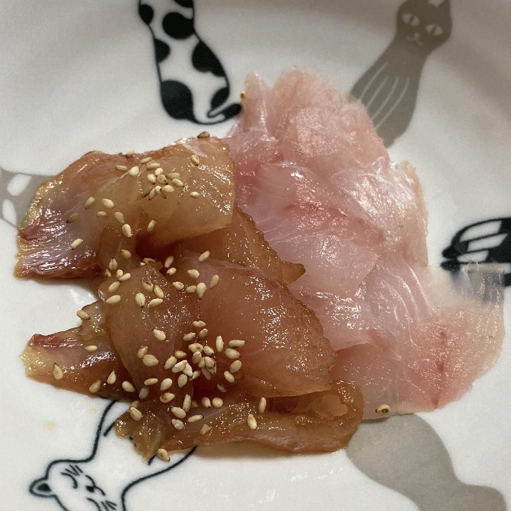 ちなみに釣りたての刺身はサクサクした食感で味はあまり感じないですね。