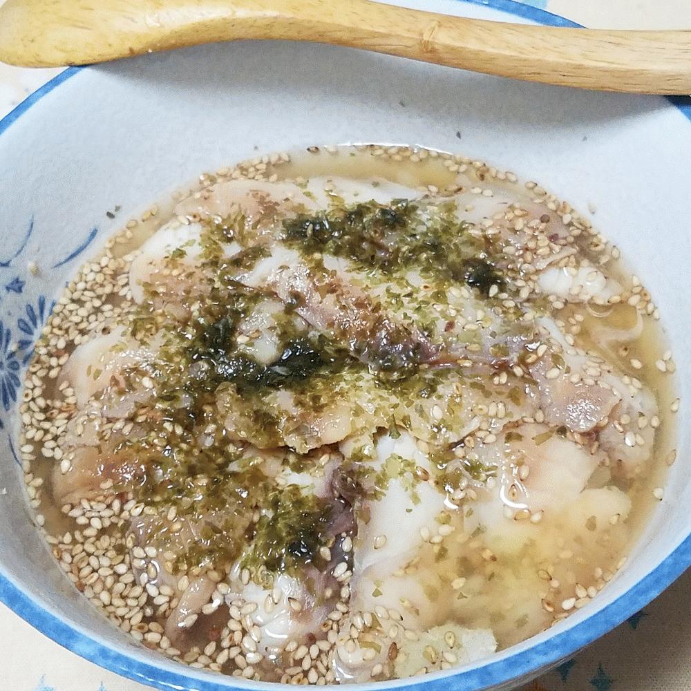 ホタテ貝の出汁、ゴマと青のりで旨い