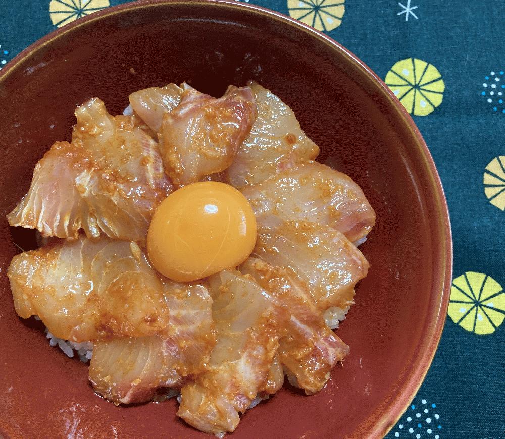 5日寝かせたコショウダイをユッケ丼で頂きました。