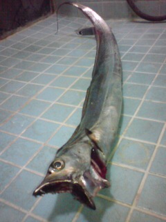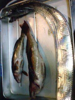 夕まづめから初挑戦のタチウオ。アタリは頻繁にあるのですがナカナカのらず。やっと掛かったところで痛恨のフェンス越えバラシ。その後もう一度掛ってなんとかフェンス越え成功♪指3本ちょいでした。ついでに日中カゴも投げまして鯖2本。アレコレ節操ない釣行でした。