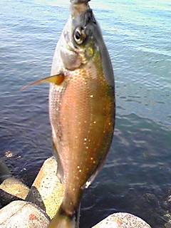 日曜・某漁港外側テトラにて昼からフカセ釣り、クジメ・海タナゴ各1匹づつのみ(°o°;; 周りではテトラ穴釣り師に良型ドンコ釣れてたけど全体的に渋い漁港(笑)