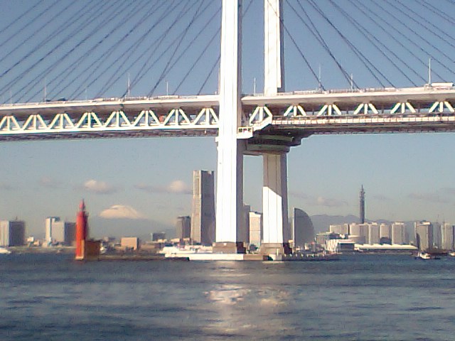 ベイブリッチ真下の赤灯には今日も5?6人が乗ってますなぁ? 富士山も少しずつ雪化粧です(^O^)/
