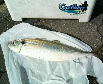 丸一年振りの堤防での釣りでしたので、カゴが狙いどうり飛ばずに苦労しましたが、AM9:30、自作ウキがズボっと潜り、引き上げたところなんと30?オーバーの尺アジでした。その他、ヒラソーダ1尾、小アジ5尾、置き竿の投げで15?位のカレイが3尾釣れました。ラッキーな一日でしたねぇー!また行くんで、報告します(*^_^*)