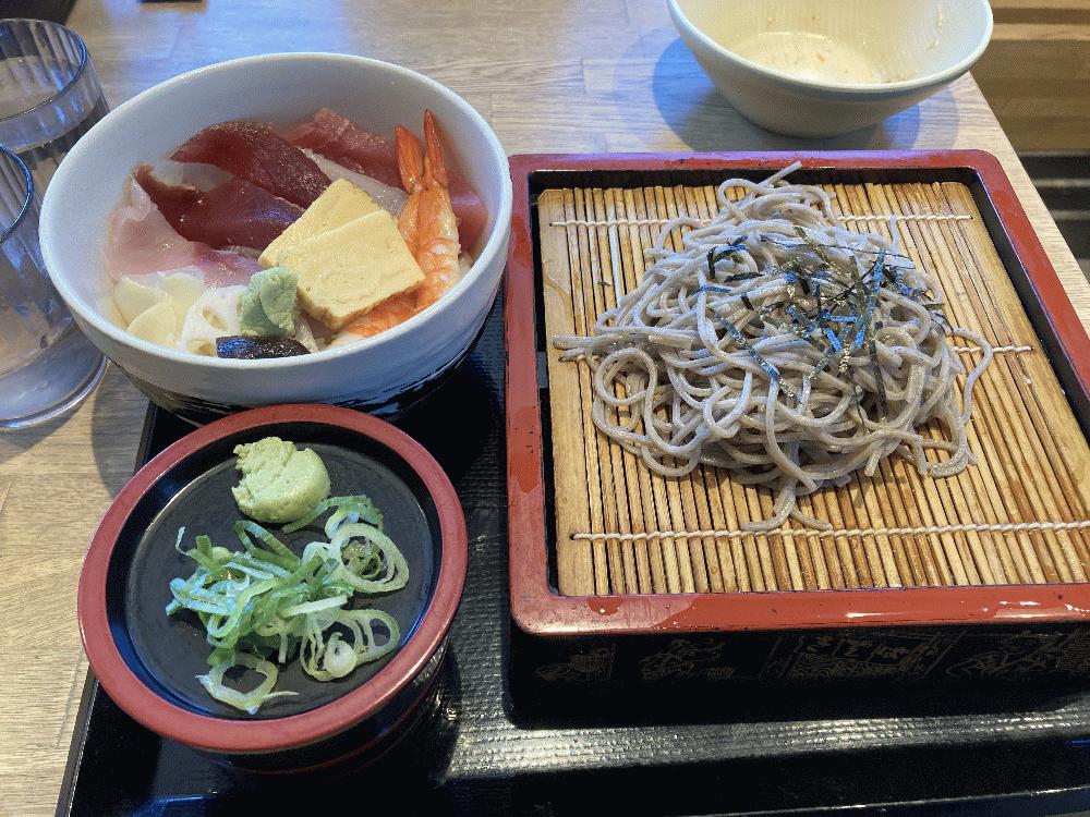 店名は忘れたけど海鮮丼と蕎麦。